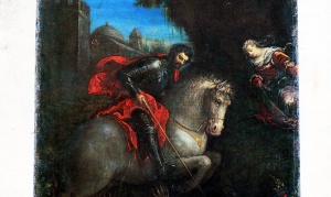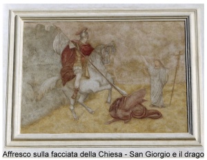 Il dipinto, attribuito a Jacopo da Ponte, detto Bassano, raffigura S. Giorgio nel momento culminante della lotta tra il Santo e il drago. Con molta probabilità il pittore abbozzò il disegno e la stesura venne condotta da suo figlio Girolamo: dati emersi durante il restauro negli anni ’80 del novecento. Purtroppo le vernici hanno ripreso l’ossidazione limitando la lettura dell’opera.