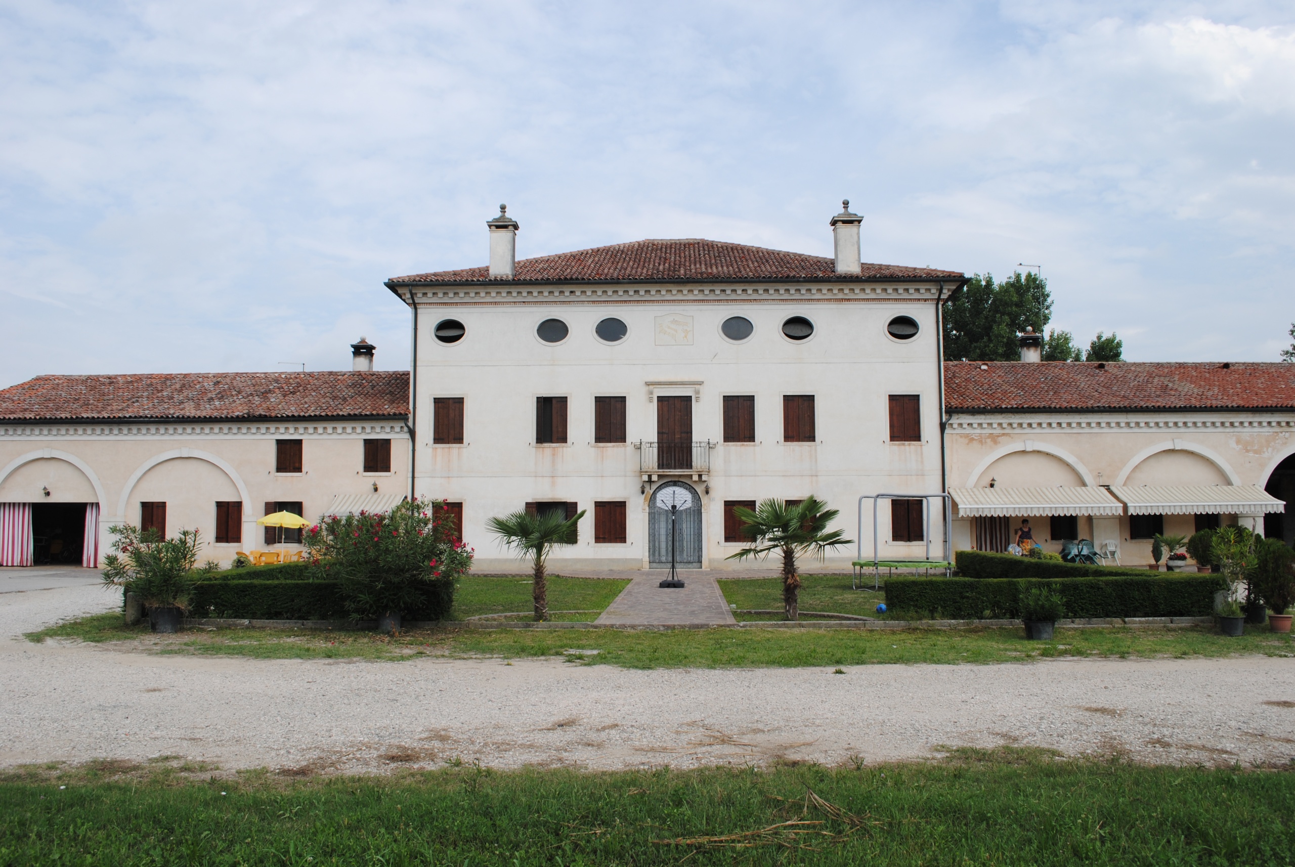Le barchesse, le stalle e la casa del fattore sono costruite in aderenza ai fianchi della villa. Davanti alla villa si apriva l’ampia corte lastricata a servizio di vasti terreni agricoli di pertinenza che permisero di mantenere l’originario rapporto tra villa ed ambiente.