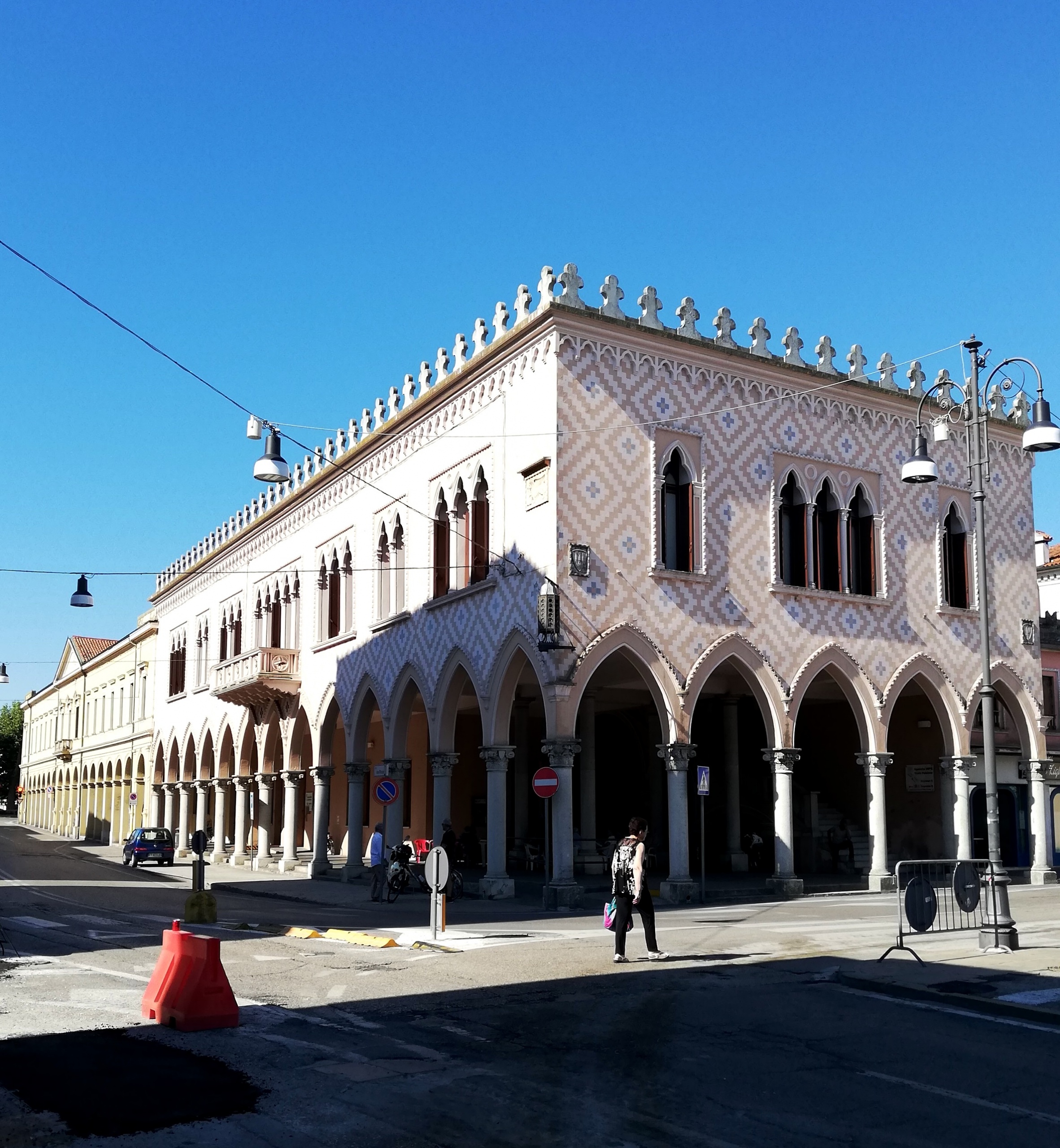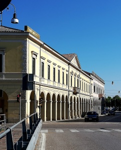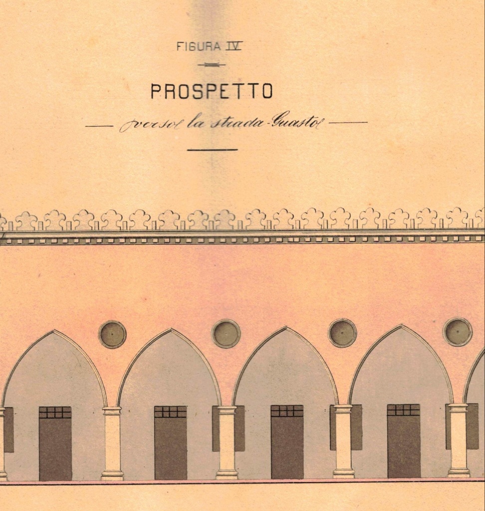 Negli anni ’20 del ‘900 viene demolito il vecchio mercato Scalzi per lasciare posto a un fabbricato in stile gotico-veneziano con ampio porticato che si aggiunge a quello delle R. Scuole Tecniche; il porticato e parte del piano terra del palazzo in stile gotico-veneziano continuerà a svolgere la funzione di “mercato coperto” per diversi anni.